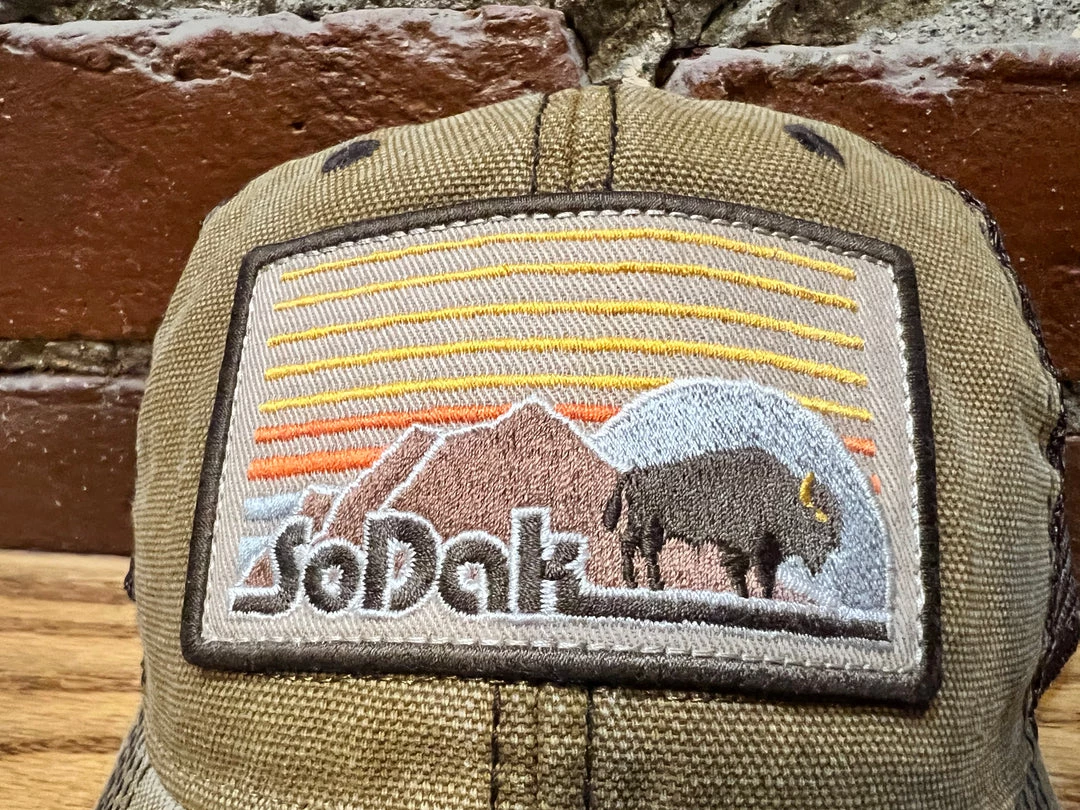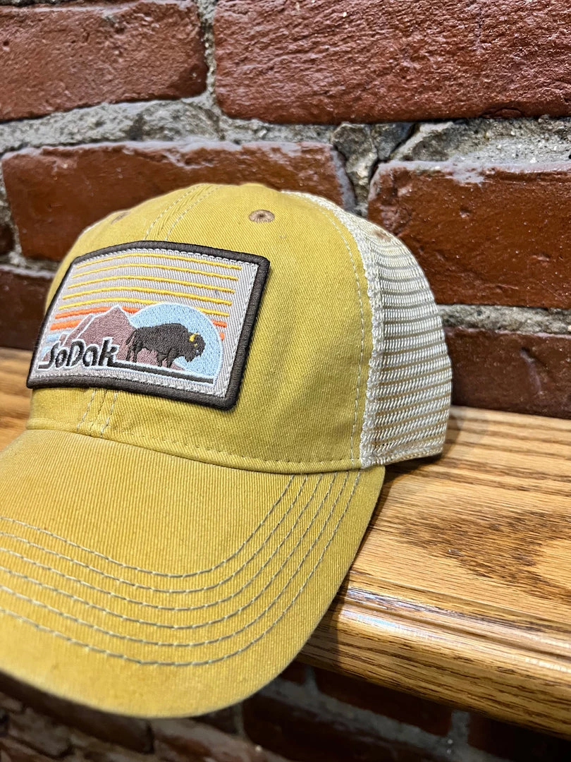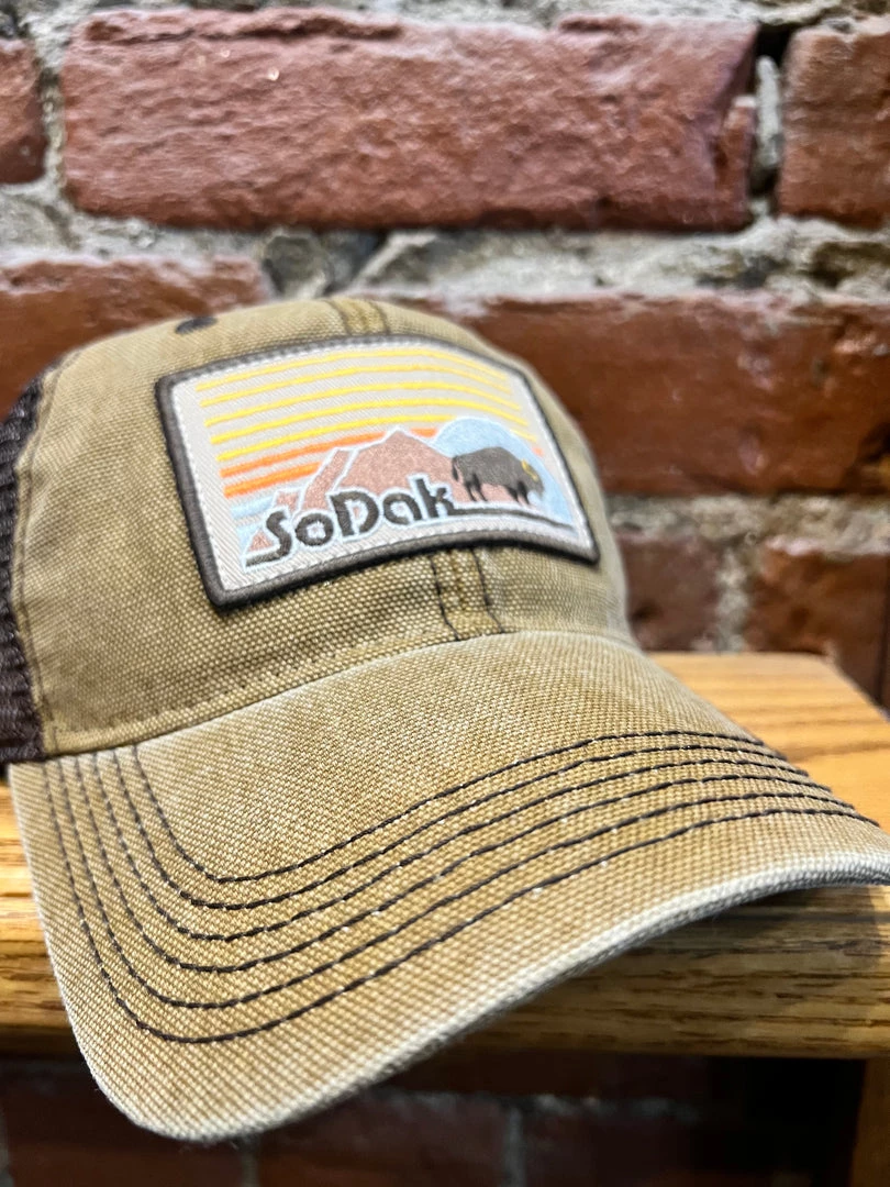 Dashboard trucker hat by SoDak Clothing. Broken in just perfect for you. Our shout out to the retro vibe this season.