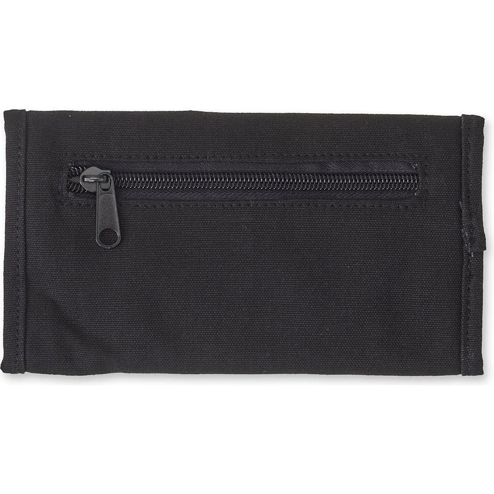 Tri-fold wallet, snap closure, one external zip pocket, internal checkbook and pen holder, multiple internal cash, card, ID slots.